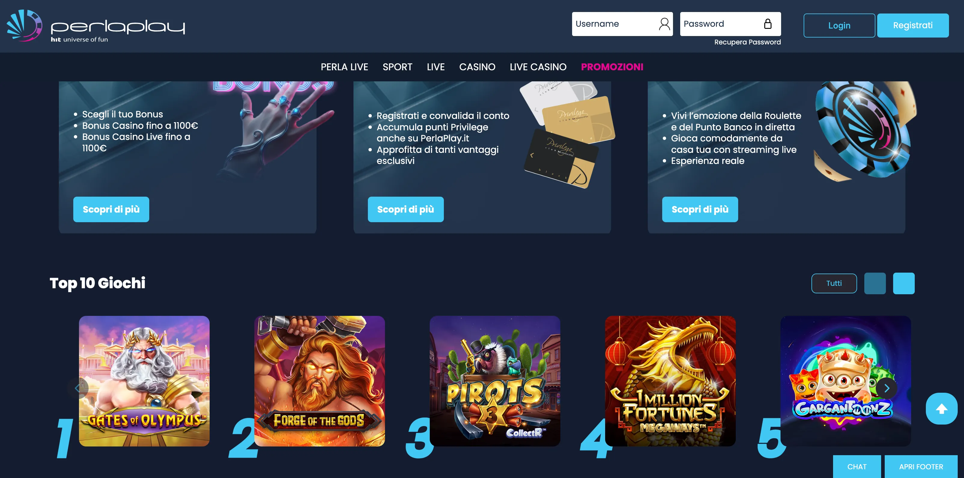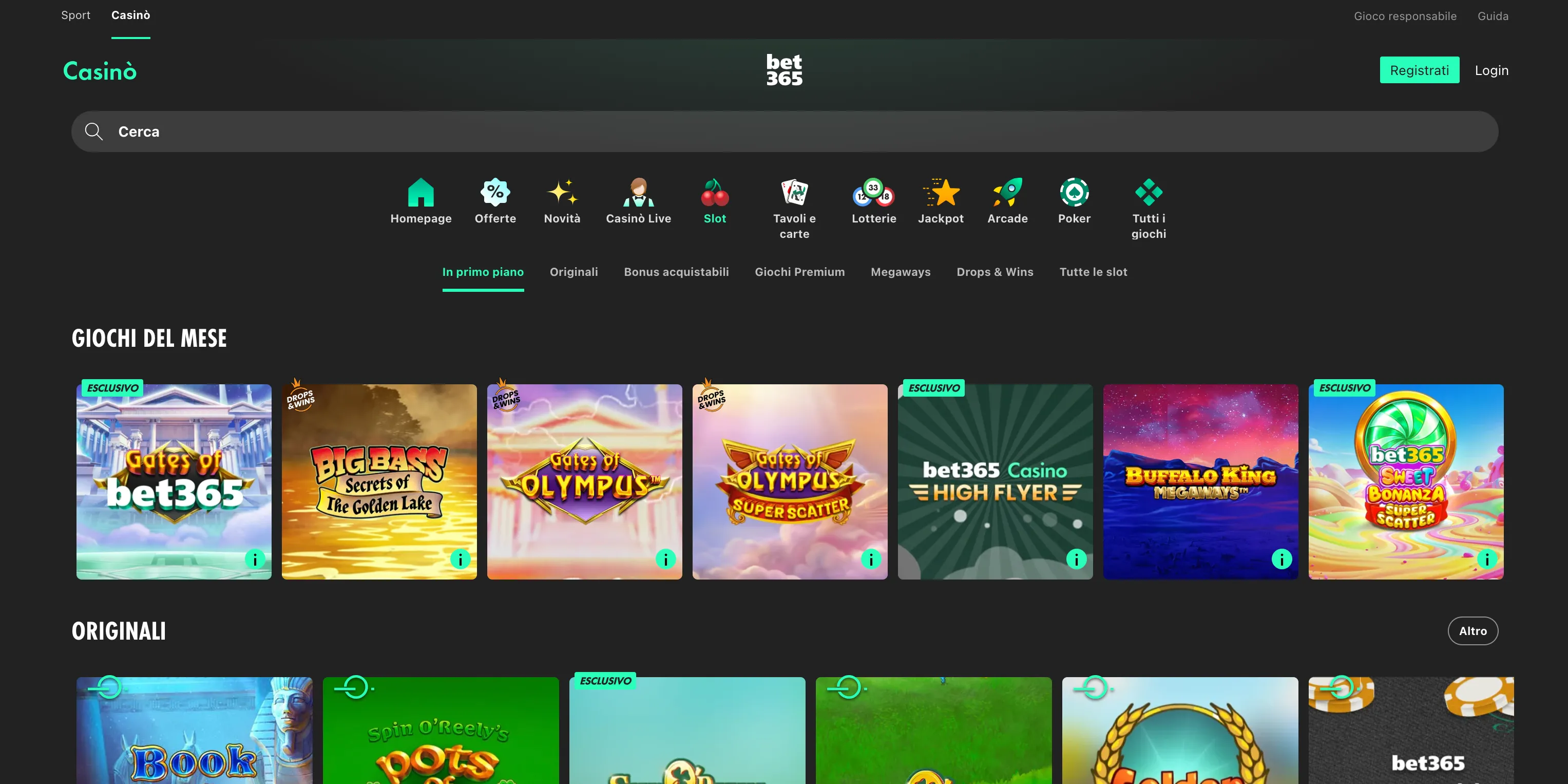 Giochi disponibili Oltre 2.000 giochi, live casino premium